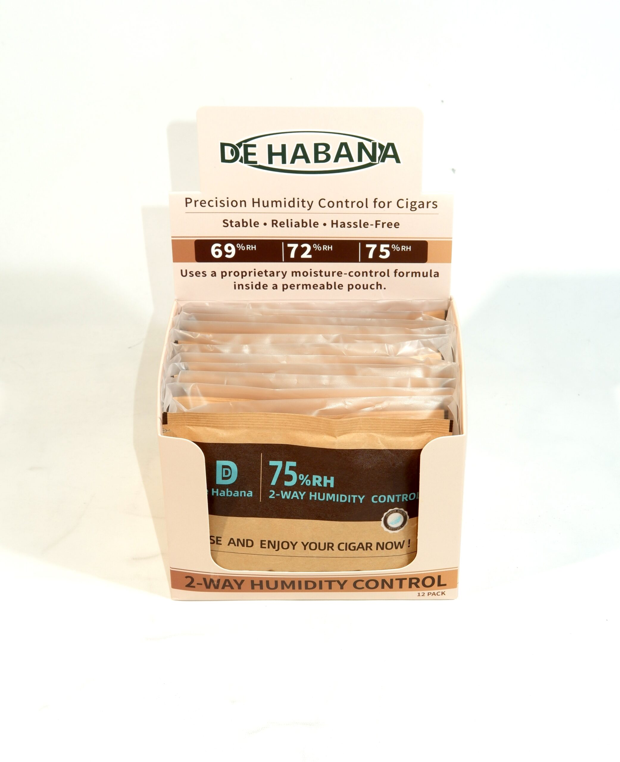 De Habana Nemlendirici %75 60gr DHN002, puro humidorlarında ideal nem seviyesini (%75) korumak için geliştirilmiş yüksek performanslı bir nem dengeleyicidir, özel jel formülü sayesinde nemi dengeli şekilde salarak puroların tazeliğini, aromasını ve yapısını uzun süre muhafaza eder, kullanımı pratik olup humidor içerisinde stabil bir ortam oluşturarak küflenme ve kuruma riskini azaltır, 60 gramlık kompakt yapısı ile farklı boyutlardaki humidorlar için uygundur, puro severler için güvenilir, uzun ömürlü ve etkili bir nemlendirme çözümü sunar.