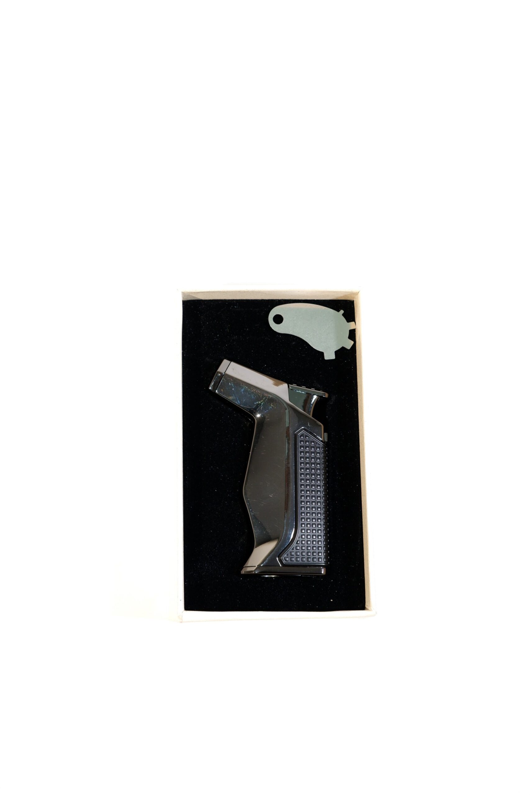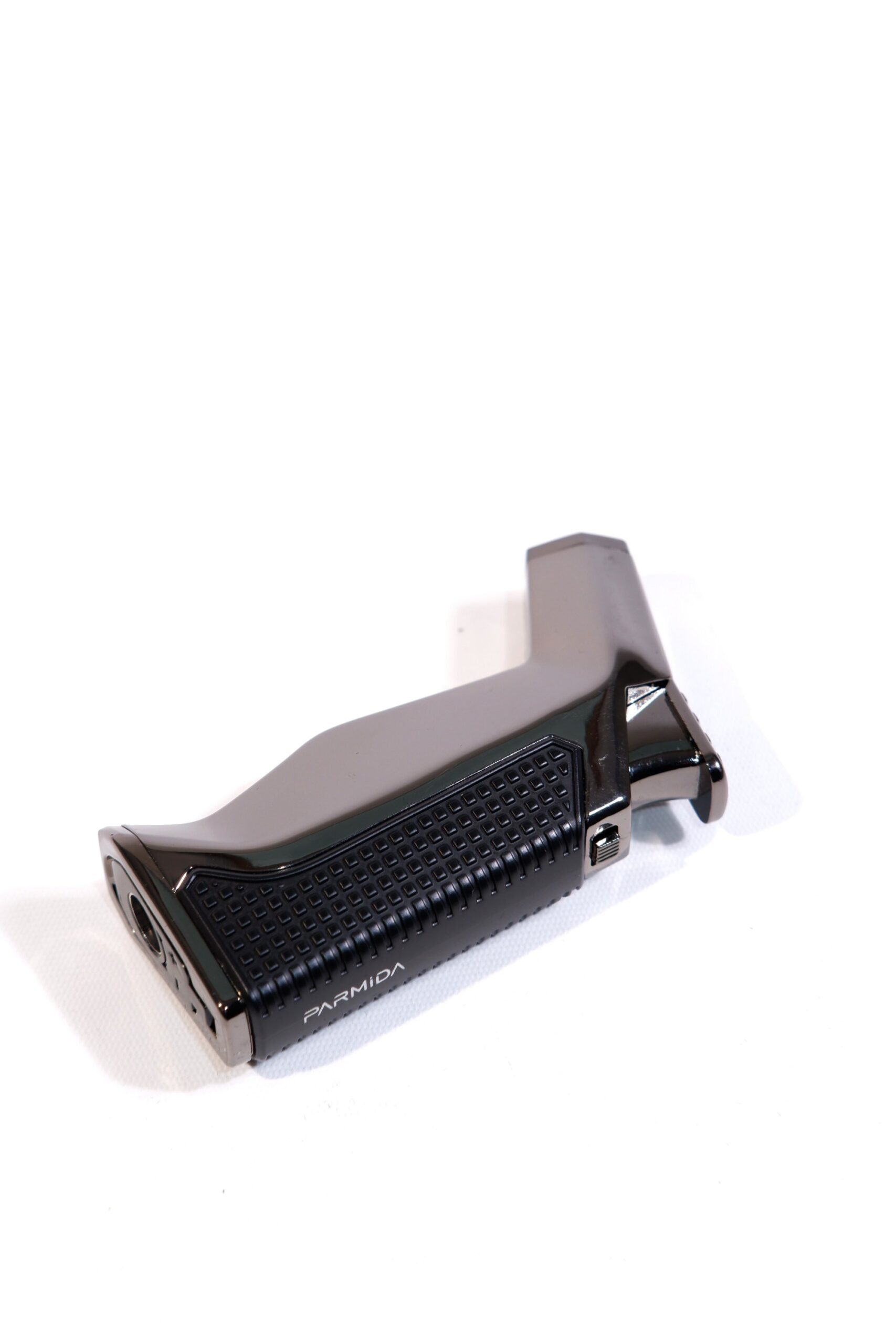 Metalik siyah tasarıma sahip Parmida delicili puro çakmağı, çakmak ve delici özelliğini tek gövdede sunar. Dayanıklı metal yapısı ve kompakt tasarımıyla puro keyfi için pratik ve şık bir aksesuardır.