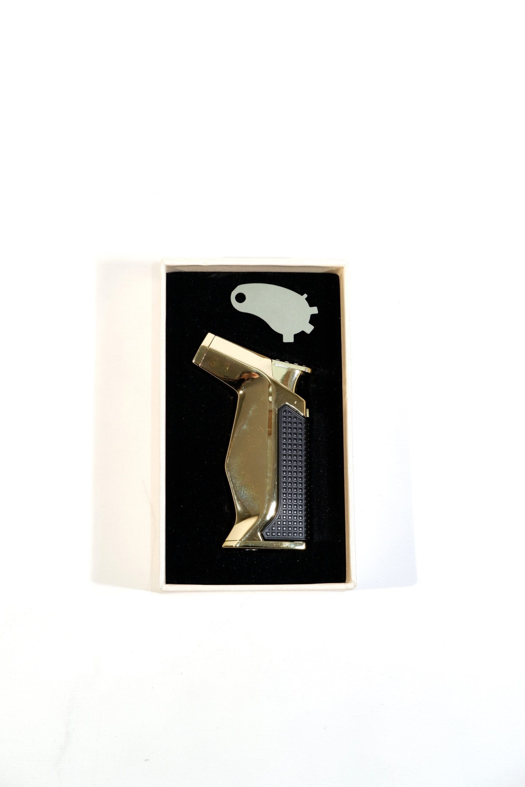 Metalik gold kaplamasıyla elit bir görünüm sunan bu delicili puro çakmağı, çakmak ve delici fonksiyonunu tek bir tasarımda buluşturur. Sağlam metal gövdesi ve kompakt yapısı ile puro keyfinize pratiklik katar. Parmida’nın şık ve dayanıklı tasarım anlayışıyla günlük ve özel kullanıma uygundur.