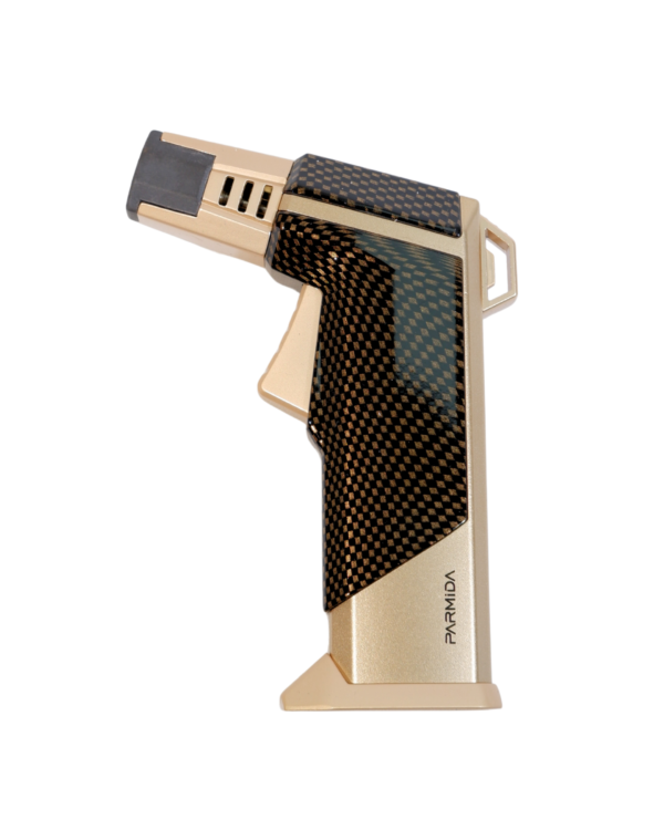 Desenli silver tasarımıyla öne çıkan Parmida puro çakmak, güçlü ve dengeli alevi sayesinde purolarınızı hızlıca yakmanızı sağlar. Kompakt ve dayanıklı yapısı, hem şık hem pratik bir kullanım sunar.