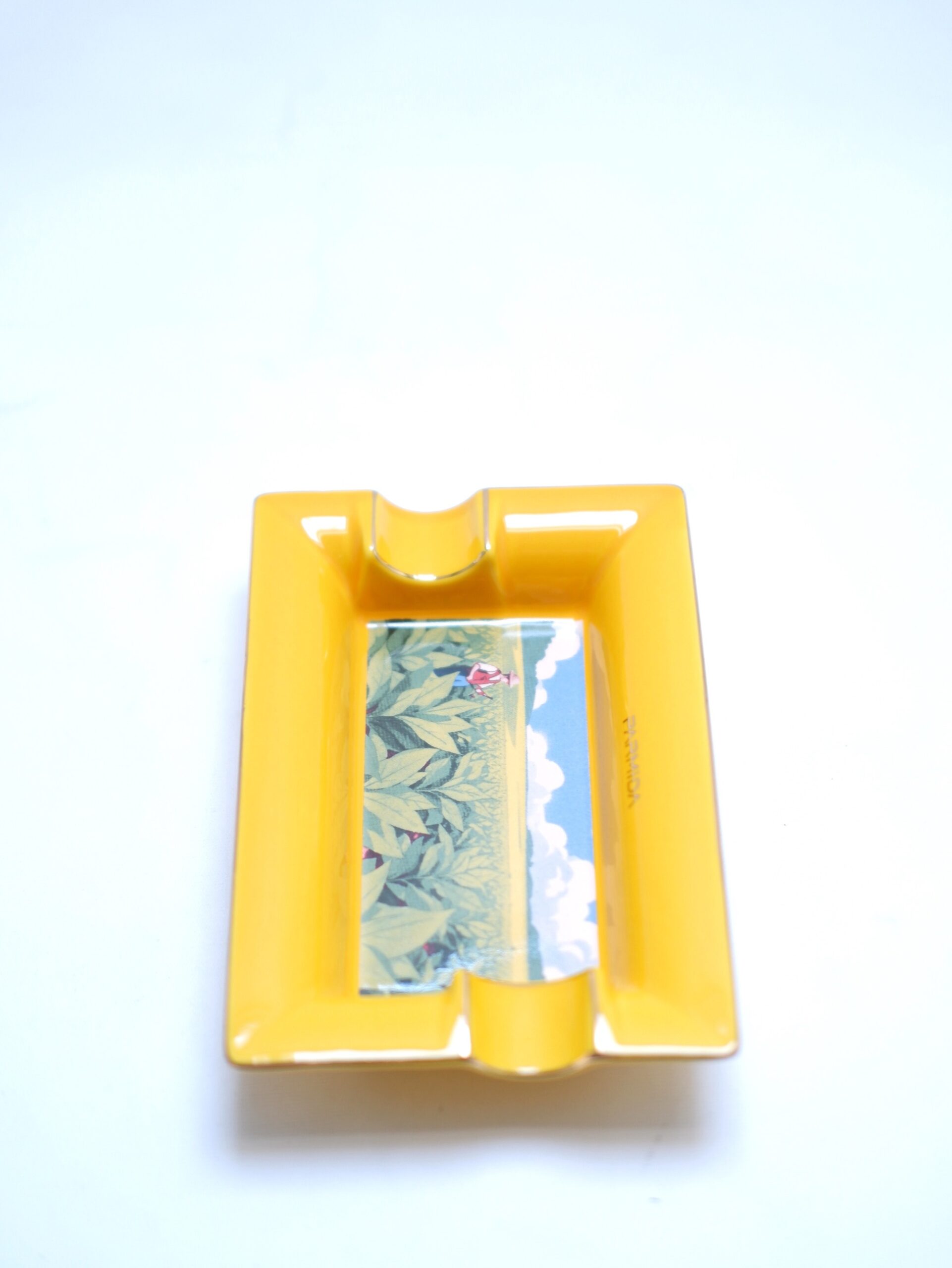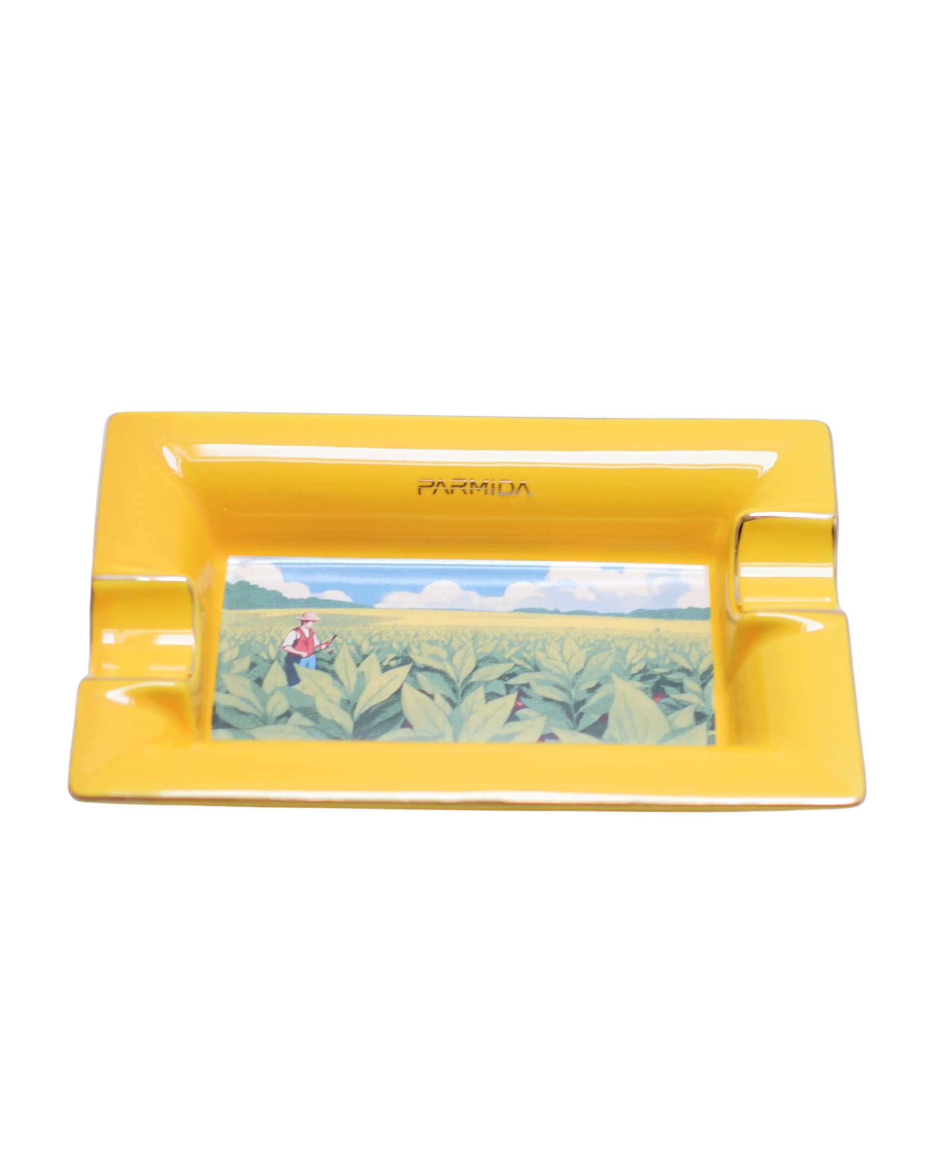 Parmida Sarı İki Hazneli Küba Yaprakları Desenli Seramik Puro Küllüğü PKL0260