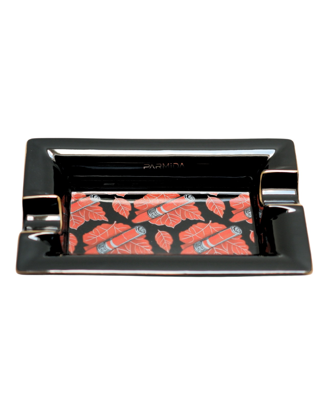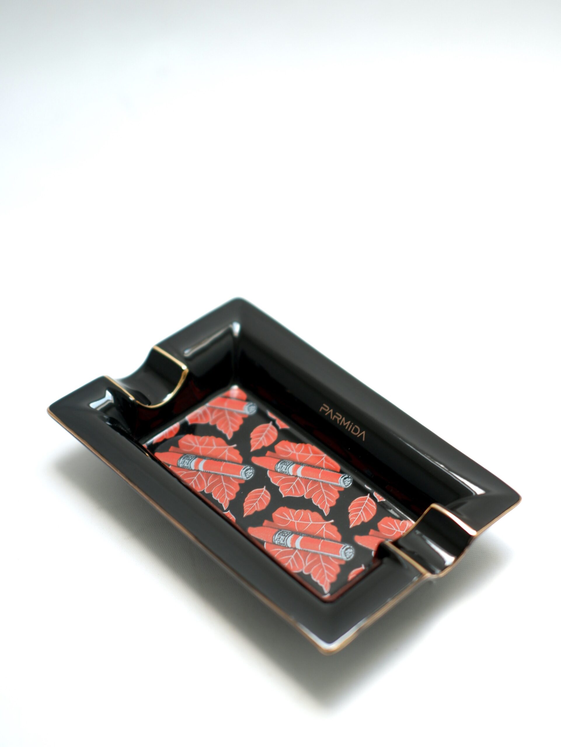 Parmida Siyah İki Hazneli Küba Yaprakları Desenli Seramik Puro Küllüğü PKL0261