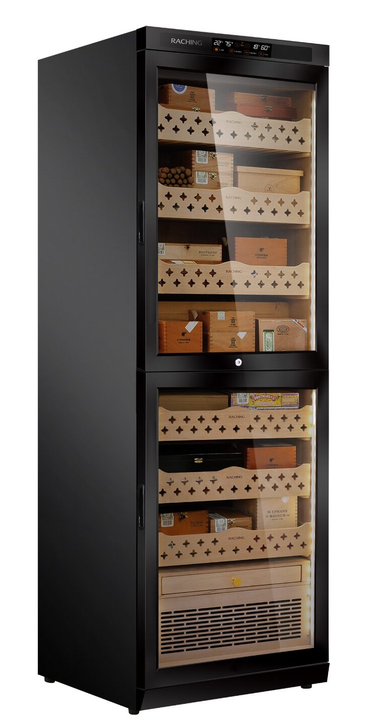 Raching Siyah Elektronik Puro Dolabı Dual Zone – Profesyonel Humidor Kabini MON3800B